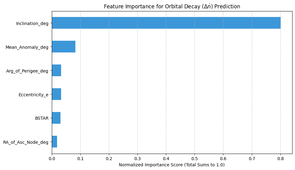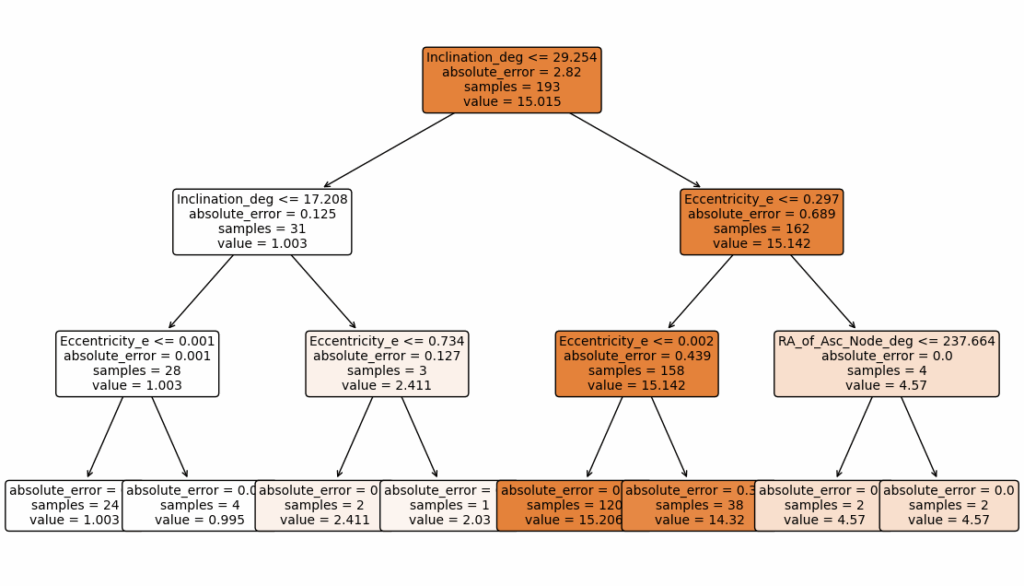 Initial step – We have used Decision Tree Regression on prepared test data set of live satellite orbital data for features importance within data set.