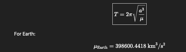 | 53–63 | 1.00272883 | Mean motion (n) in rev/day |