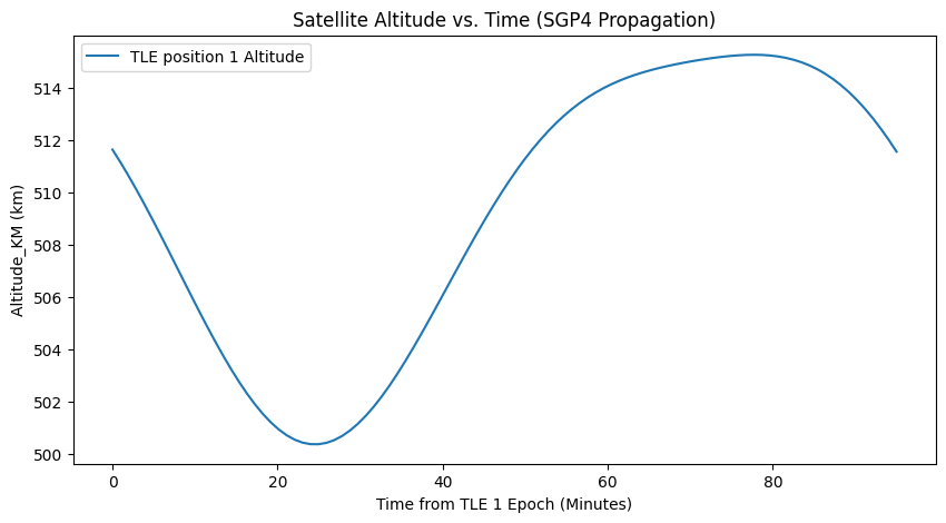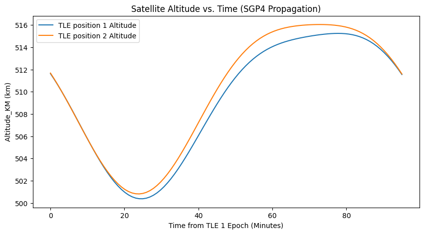 In contrast, the SGP4 orbit propagator incorporates both secular and periodic orbital disturbances due to the Earth’s shape and atmospheric drag, making it suitable for satellites in near-Earth orbit with orbital periods less than 225 minutes. When the orbital period of the satellite is greater than 225 minutes, the SGP4 orbit propagator additionally accounts for solar and lunar gravity.