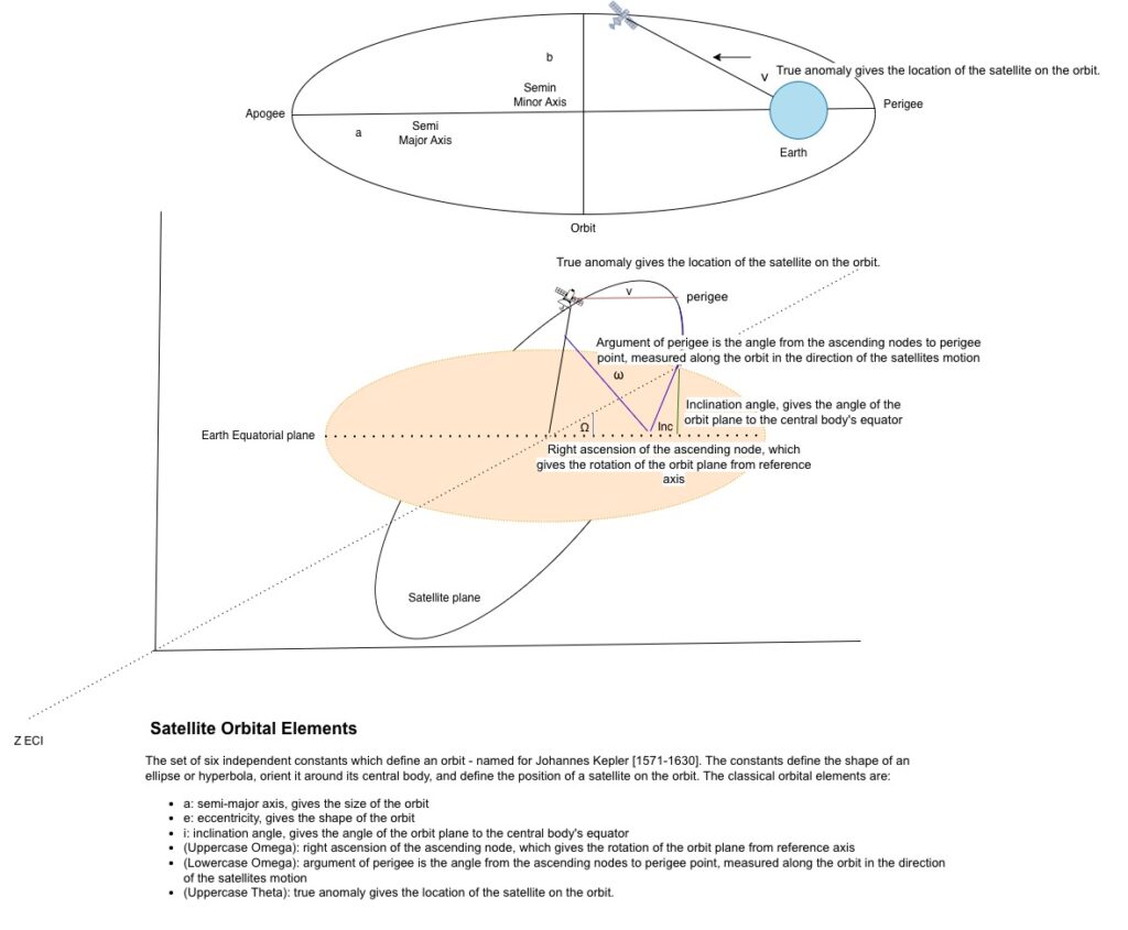 Fig 3 : Simplified version of 6 orbital parameters of a satellite orbit