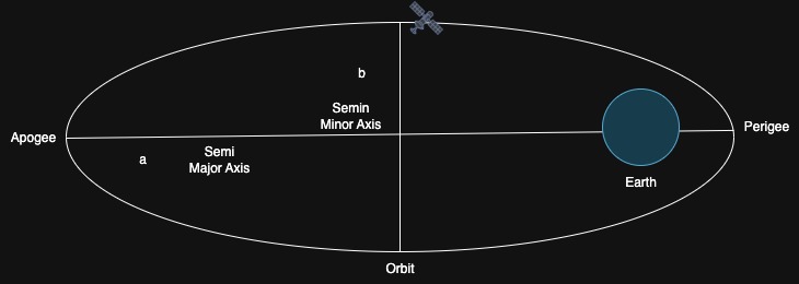 | Eccentricity | 2 | Shape of the orbit. Defines how elliptical the orbit is. | e=0 is a perfect circle; 0 < e < 1is an ellipse. Determines the difference between apogee (highest point) and perigee (lowest point). |
